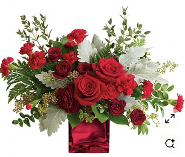 Soft, silvery dusty miller and aromatic eucalyptus add texture and contrast, while leather leaf greenery completes the design with a polished, garden-inspired finish. Styled in a modern cube vase, Forever Yours is perfect for Valentine’s Day, moments meant to be cherished forever.